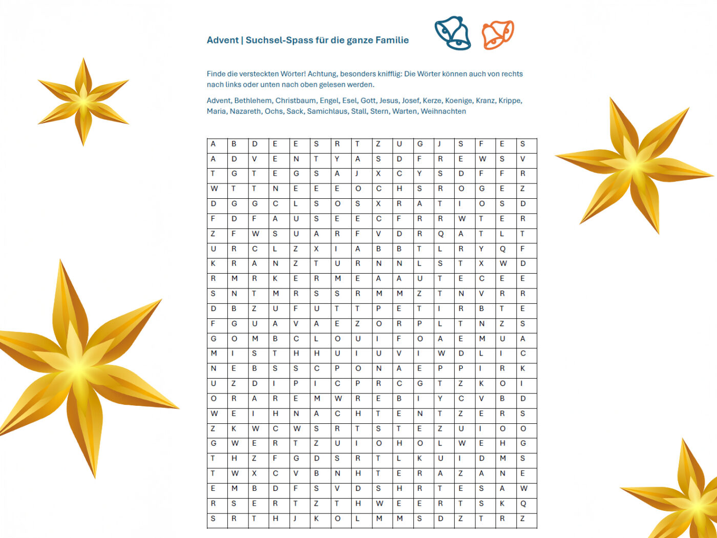 Unser Suchsel zum Advent findet ihr hier zum Download