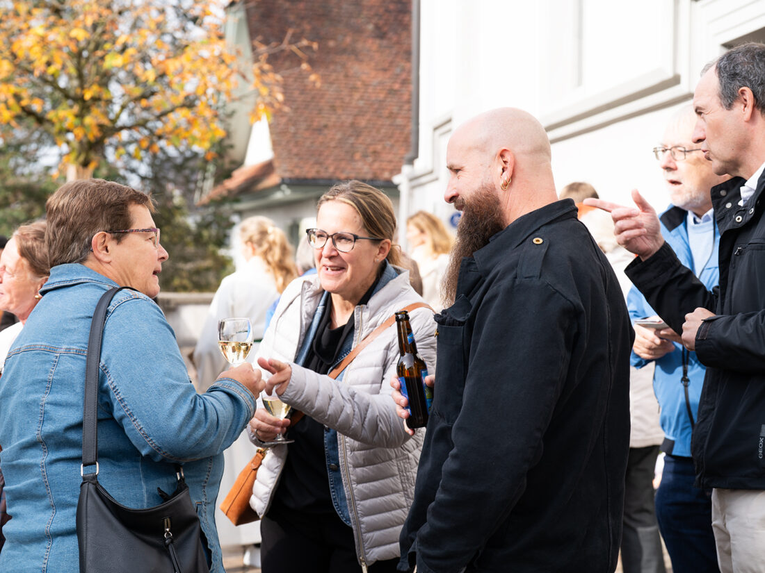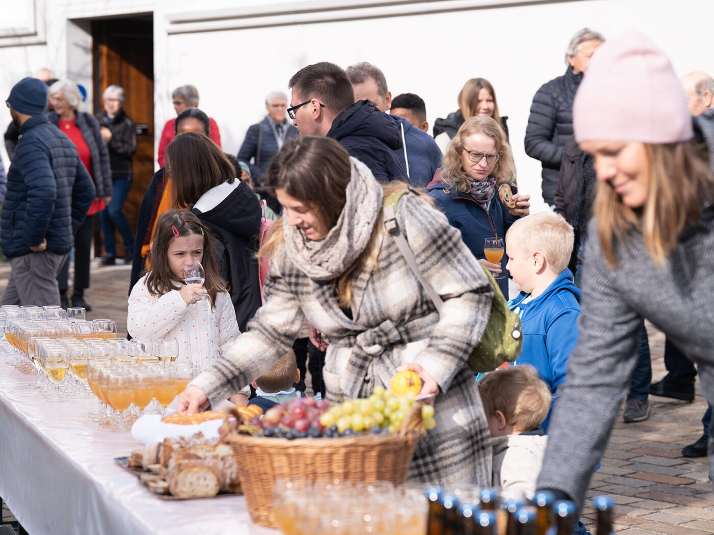 Im Anschluss an den Gottesdienst waren alle eingeladen, auf dem Kirchplatz bei einem Apéro mit Most, Brot und Trauben zusammenzukommen und die neue Pfarreimitarbeiterin Barbara Togni kennenzulernen.