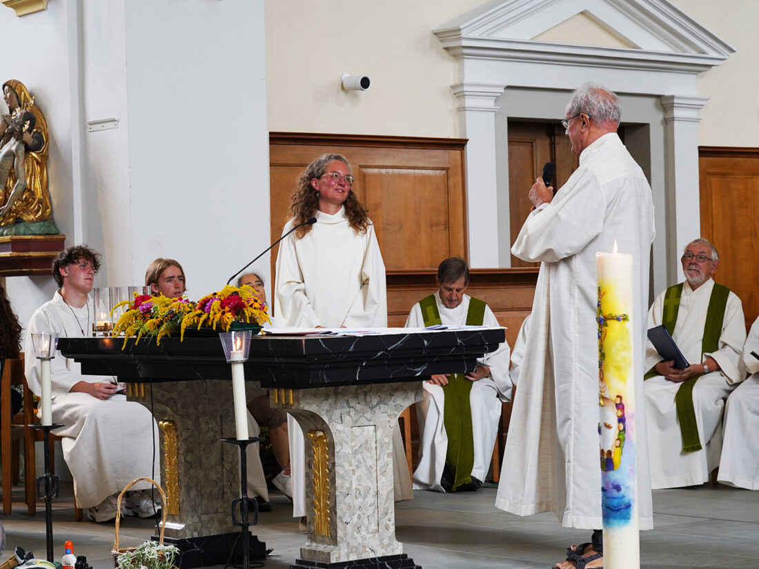 Am Sonntag, 14. September, feierten wir in unserer Pfarrei einen stimmungsvollen Familiengottesdienst zur Ministrantenaufnahme. Drei neue Minis – Sarina, Christine und Ramon – durften wir in die Gemeinschaft der Ministrantinnen und Ministranten aufnehmen. Es war ein starkes Zeichen, dass so viele Minis und das Leitungsteam anwesend waren, um die neuen Minis willkommen zu heissen.