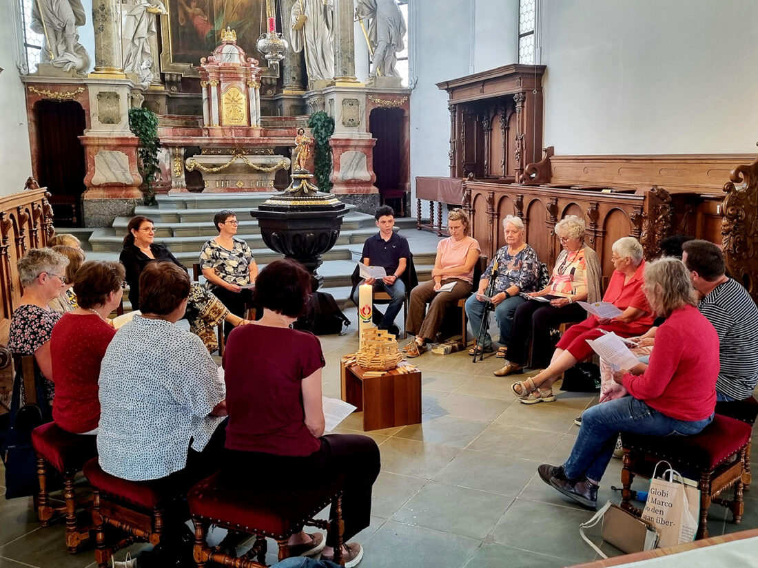 Was das heute heissen kann, fragte Karin Züricher verschiedene Seelsorgende des Pastoralraums. Christoph Beeler berichtete von seiner Trekkingreise in Lappland: «Da war der Kompass sehr wichtig. Wir haben sogar einen Reservekompass mitgenommen. Das GPS kann ausfallen, und dann ist man darauf angewiesen. Dann braucht man etwas oder jemanden, der einem die nächste Wegmarke zeigt.» Daniela Müller erklärte: «Ich habe immer eine kleine Notfallapotheke dabei. Es sind Sachen, die mir, wenn etwas ist, im Moment helfen. Das brauche ich auch im übertragenen Sinn im Leben.» Für sie ist es Gott, der sie begleitet, heilt und stärkt. «So sollten wir die Glaubensapotheke immer im Rucksack haben, wenn wir unterwegs sind.»