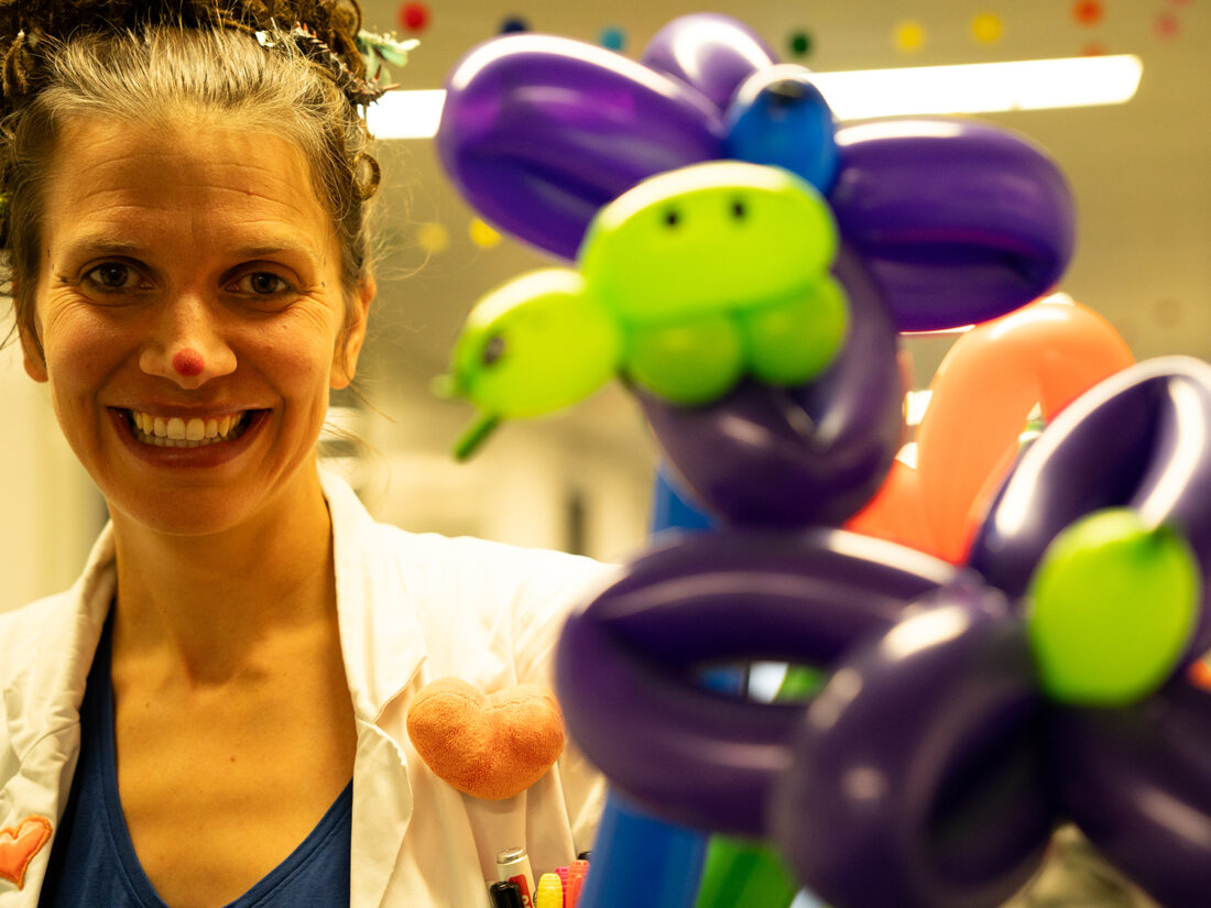 Im Gang knüpft sie aus langen Ballon-Schläuchen einen Blumenstrauss. Ob ein kleiner Ballon, eine Spielzeugfigur, eine Medaille oder eine Karte – über ein solches Geschenk freue sich fast jedes Kind, sagt sie.
