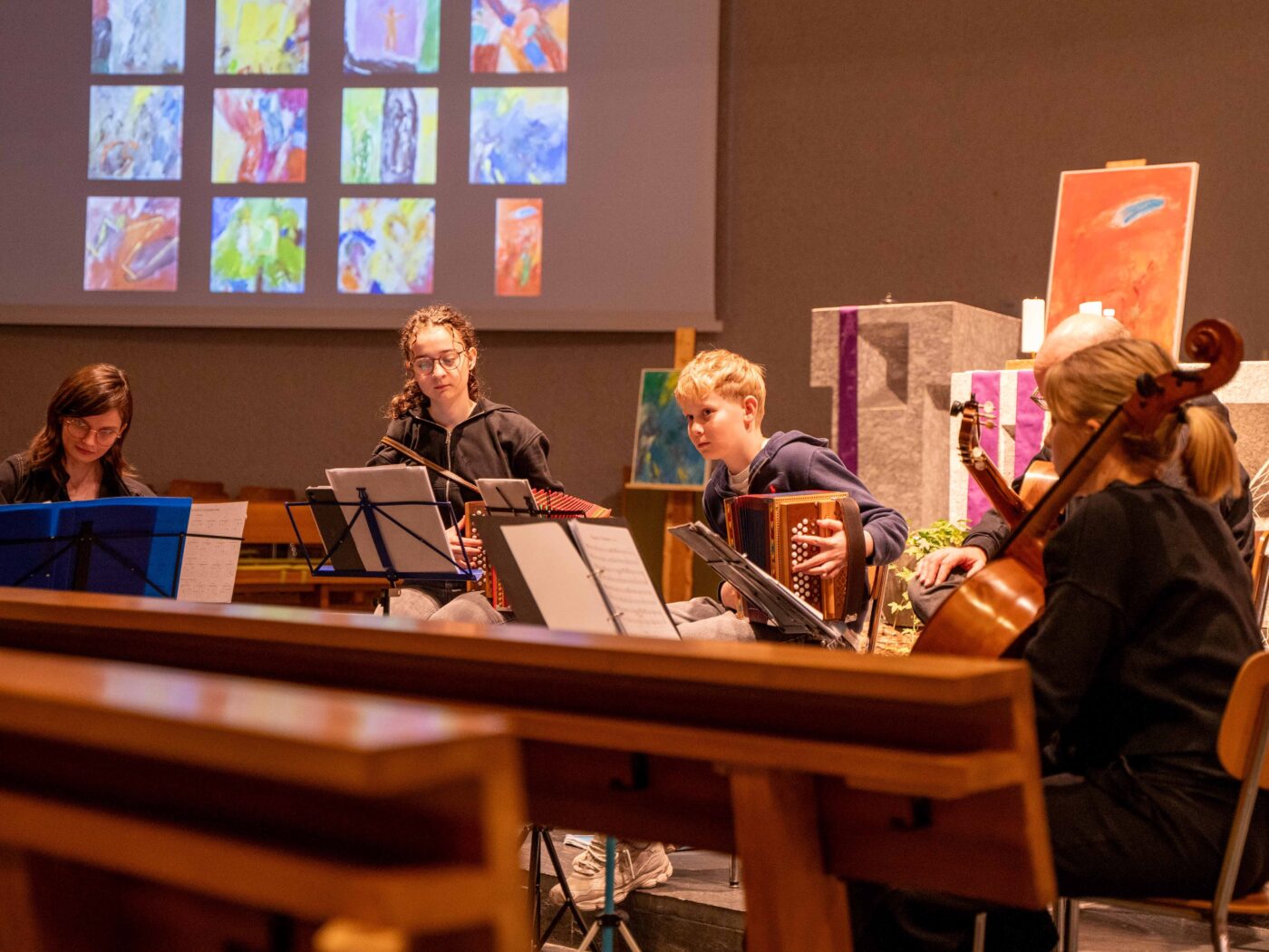 Der Einladung zum Familiengottesdienst folgten Menschen jeden Alters. Gemeinsam mit Marcel Bregenzer, Heidi Kaufmann, Andreas Wüest und dem Jugendchor der von einigen weiteren Singenden unterstützt wurde, feierten die Gemeinschaft Weihnachten.