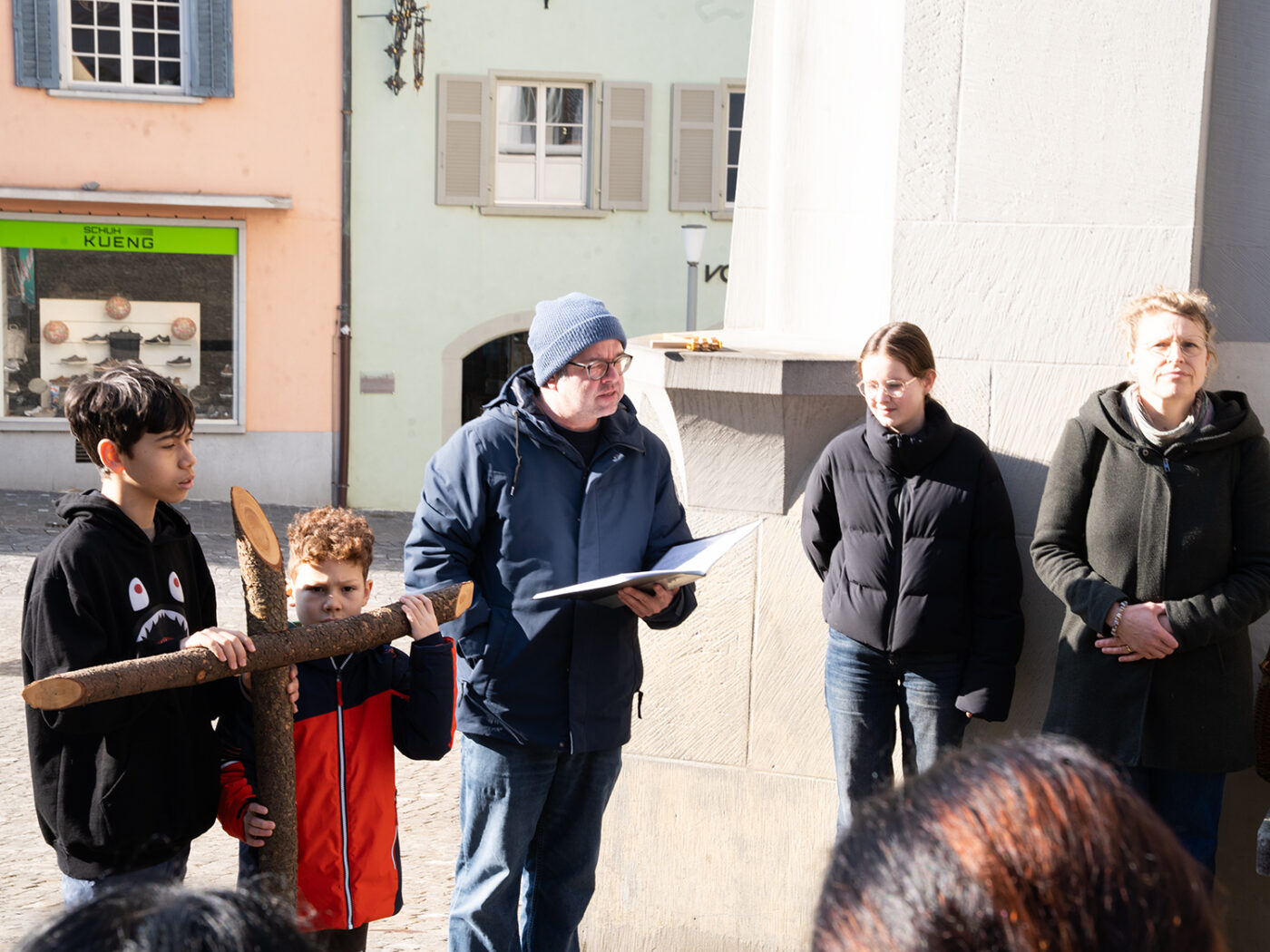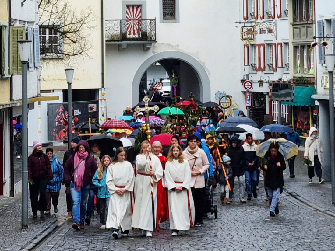Die feierliche Tage um Ostern begannen mit dem Kinderkreuzweg: Dieser brachte Familien, Kinder und auch interessierte Erwachsene zusammen. Auf dem Stationenweg durchs Städtli wurde mit Impulsen und der Passionsgeschichte Jesu gemeinsam über Leid und Gerechtigkeit nachgedacht.
