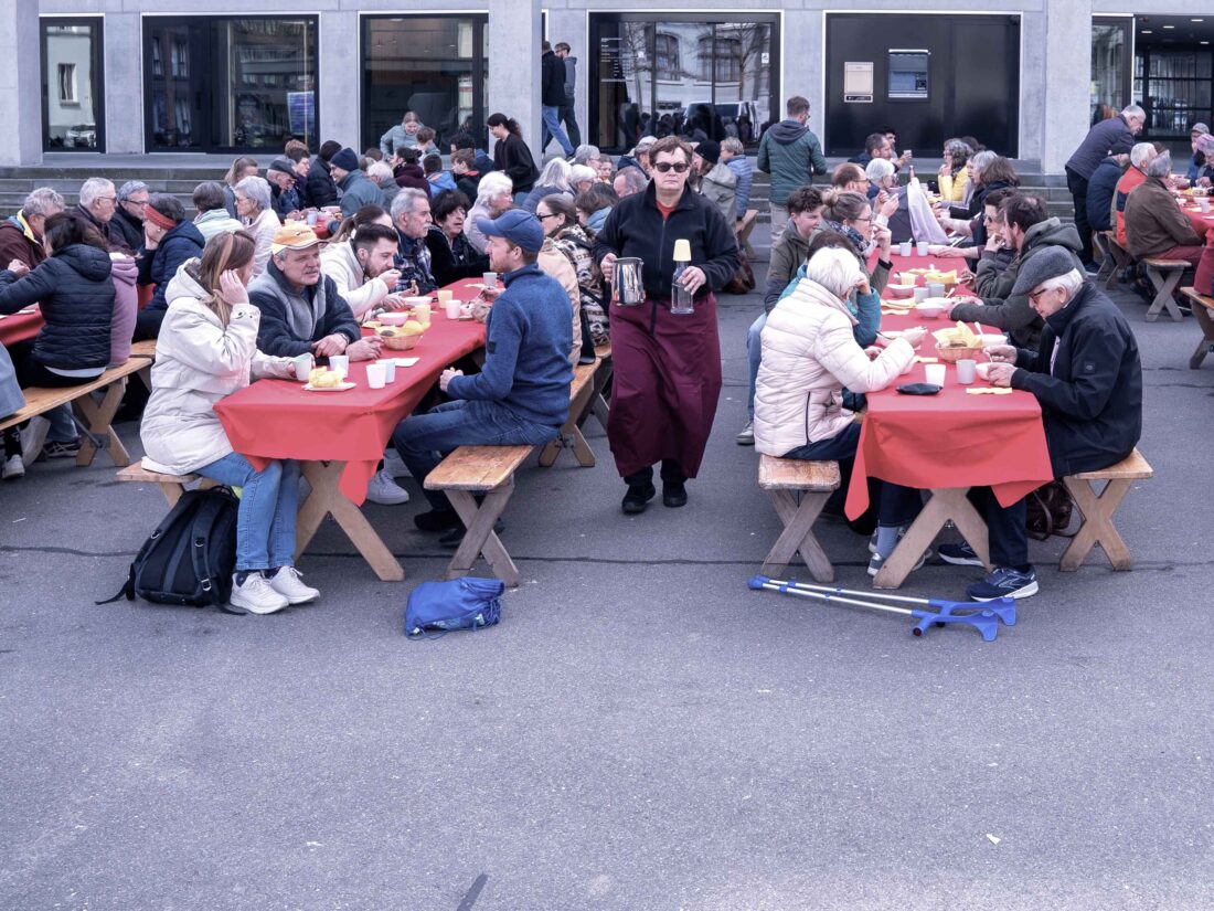 Nach der Feier in der Kirche versammelten sich rund 50 Personen auf dem Rathausplatz. Dort genossen sie Punsch und ein Outdoor-Fondue und liessen den Abend in gemütlicher Gemeinschaft ausklingen. Eine Gruppe von elf Firmand*innen aus der ganzen PRSU hatte die Kerzen aufgestellt und angezündet sowie das Fondue vorbereitet. Trotz der winterlichen Kälte war die Stimmung herzlich, und viele verweilten gerne am Feuer und beim gemeinsamen Essen. Der Erlös aus den Spenden kommt der Caritas Schweiz zugute und unterstützt armutsbetroffene Menschen in der Schweiz.
